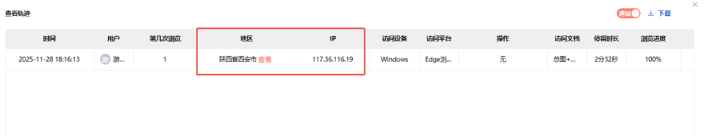 • 跨地域访问:后台可以查看访问到游览人的IP地址,若客户IP显示其所在城市并非目标市场,却主动查阅文件,可能暗示“潜在需求未被挖掘”。