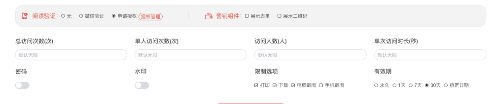 如果你仅希望限制文件只能由群内成员查看,而不限制其访问频次或时间,其余参数均可使用默认设置,无需额外调整。